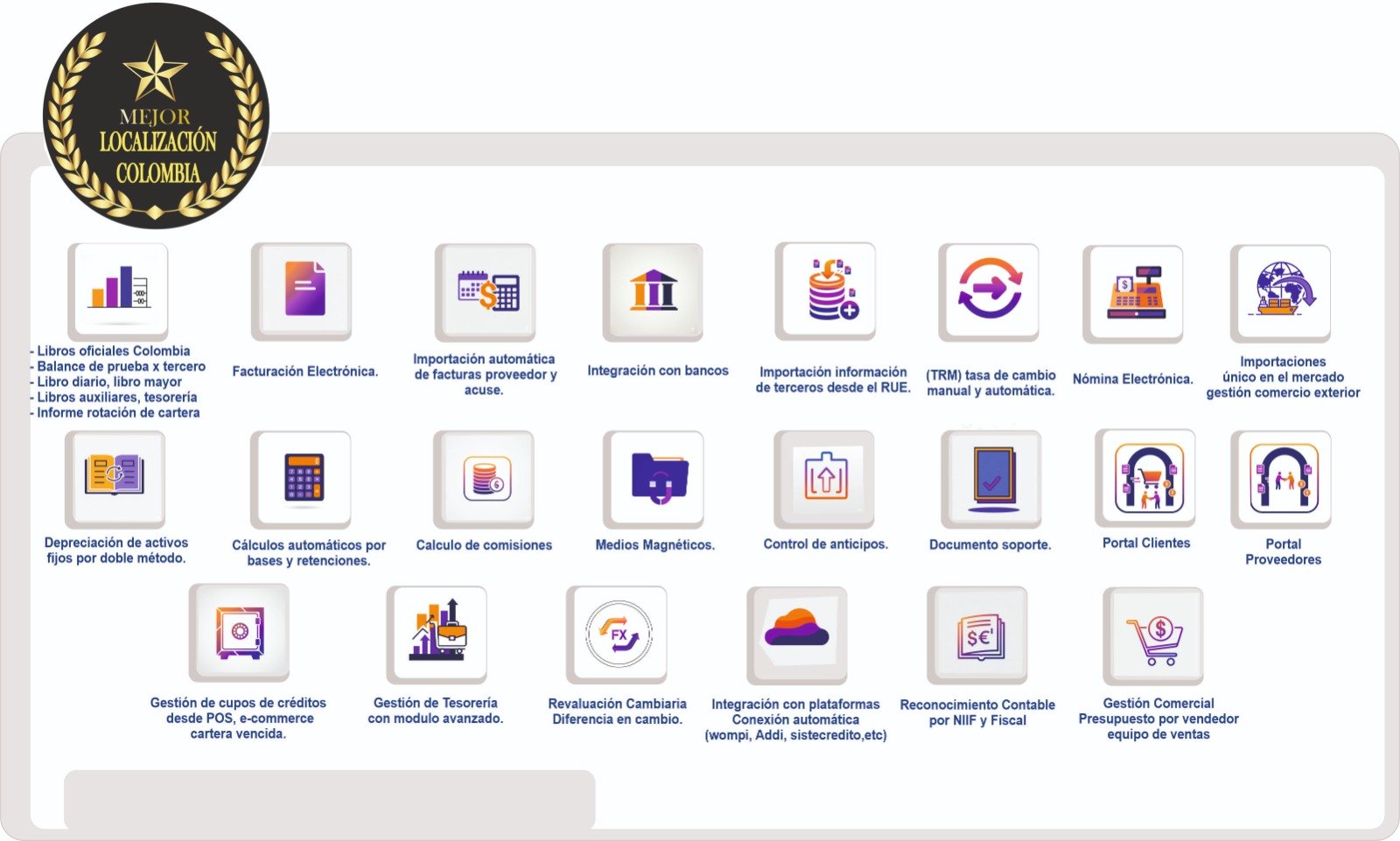 Confiables, cumpliendo con las normativas locales como la facturación electrónica en Colombia.